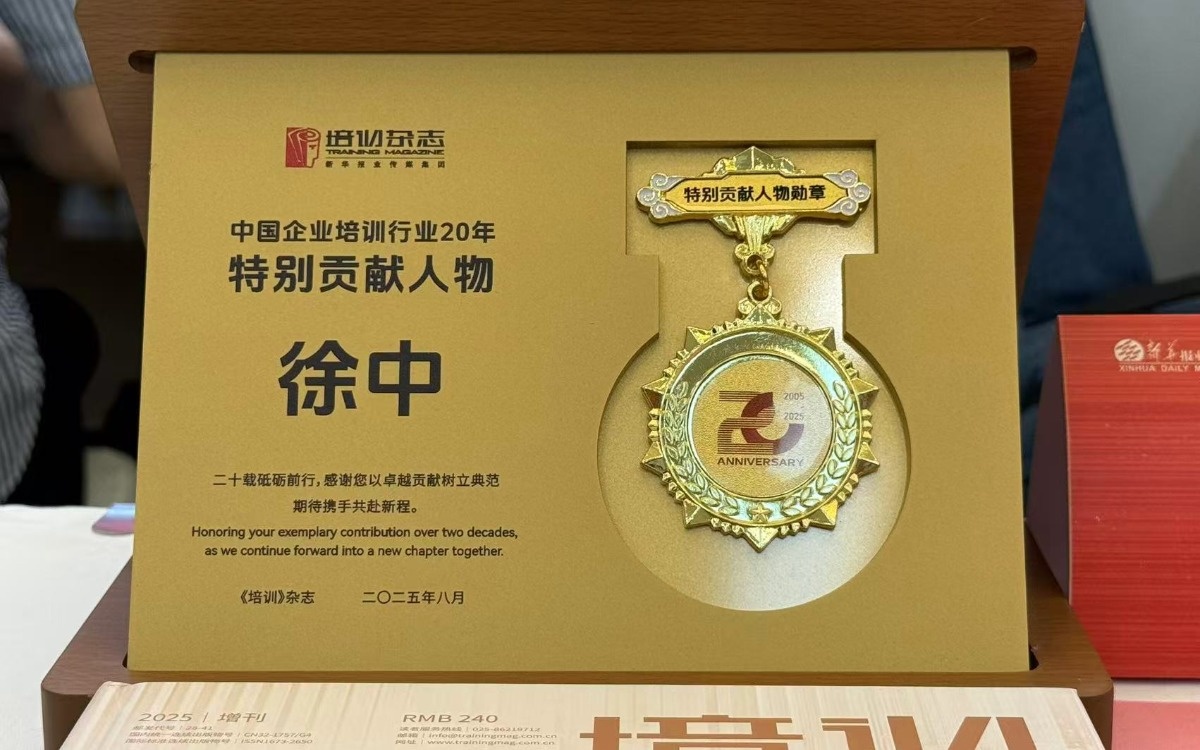 徐中博士荣获“中国企业培训行业20年特别贡献人物”称号。